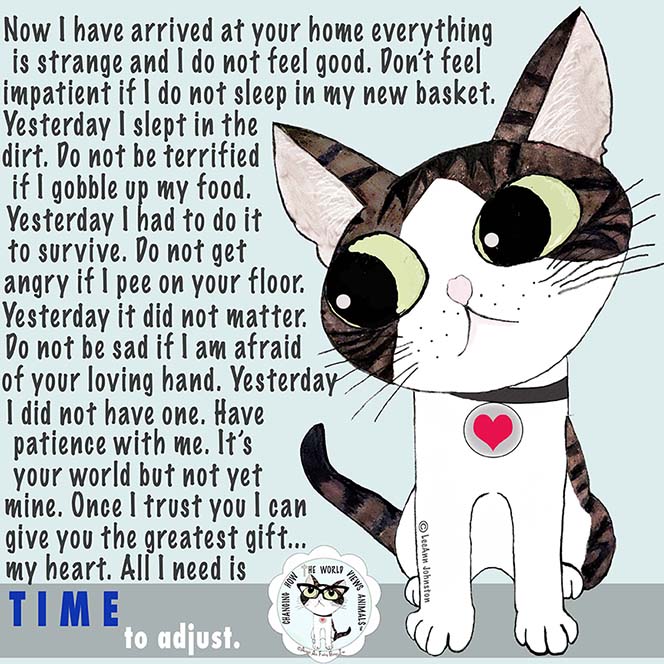 It’s been almost a year since we moved and I’m still adjusting. So this got me thinking, if us human beings struggle with change and need time to adjust, why would we think it would be any different for an animal? If they don’t “fit in” within a certain “time frame” we set for them we lose our patience with them, get frustrated, and maybe even return them. But you see there is no specific time frame for us in getting over the death of a loved one or getting adjusted to a new home just as there isn’t for a new pet to feel safe and comfortable.